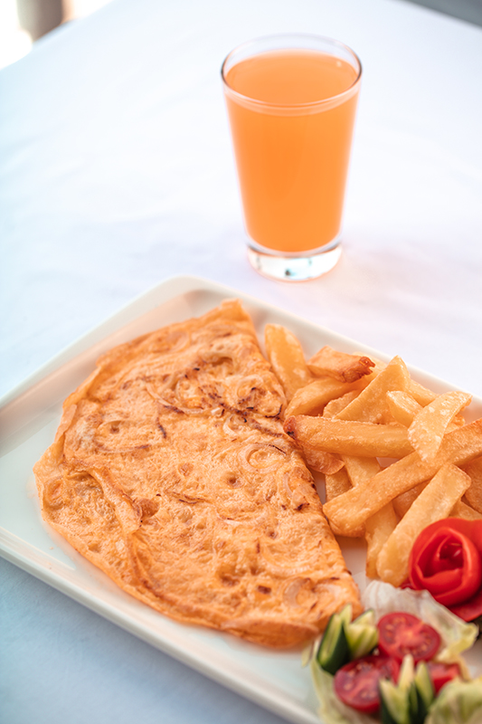 Gün boyunca muhteşem manzaraya sahip açık hava restoranında kahvaltı, öğle yemeği ve akşam yemeği dahil lezzetli yerel ve uluslararası yemeklerin tadını çıkarın.